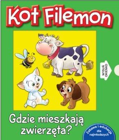 Kto gdzie śpi? Z Filemonem zgaduj ty! Sympatyczny bohater dobranocek zadaje zagadki i pomaga dzieciom poznawać świat. Podczas zabawy z Kotem Filemonem maluchy uczą się, gdzie mieszkają różne zwierzęta. Przeczytaj dziecku zabawny wierszyk, żeby mogło odpowiedzieć na pytanie. A potem wysuńcie specjalne okienko, żeby dziecko sprawdziło rozwiązanie...